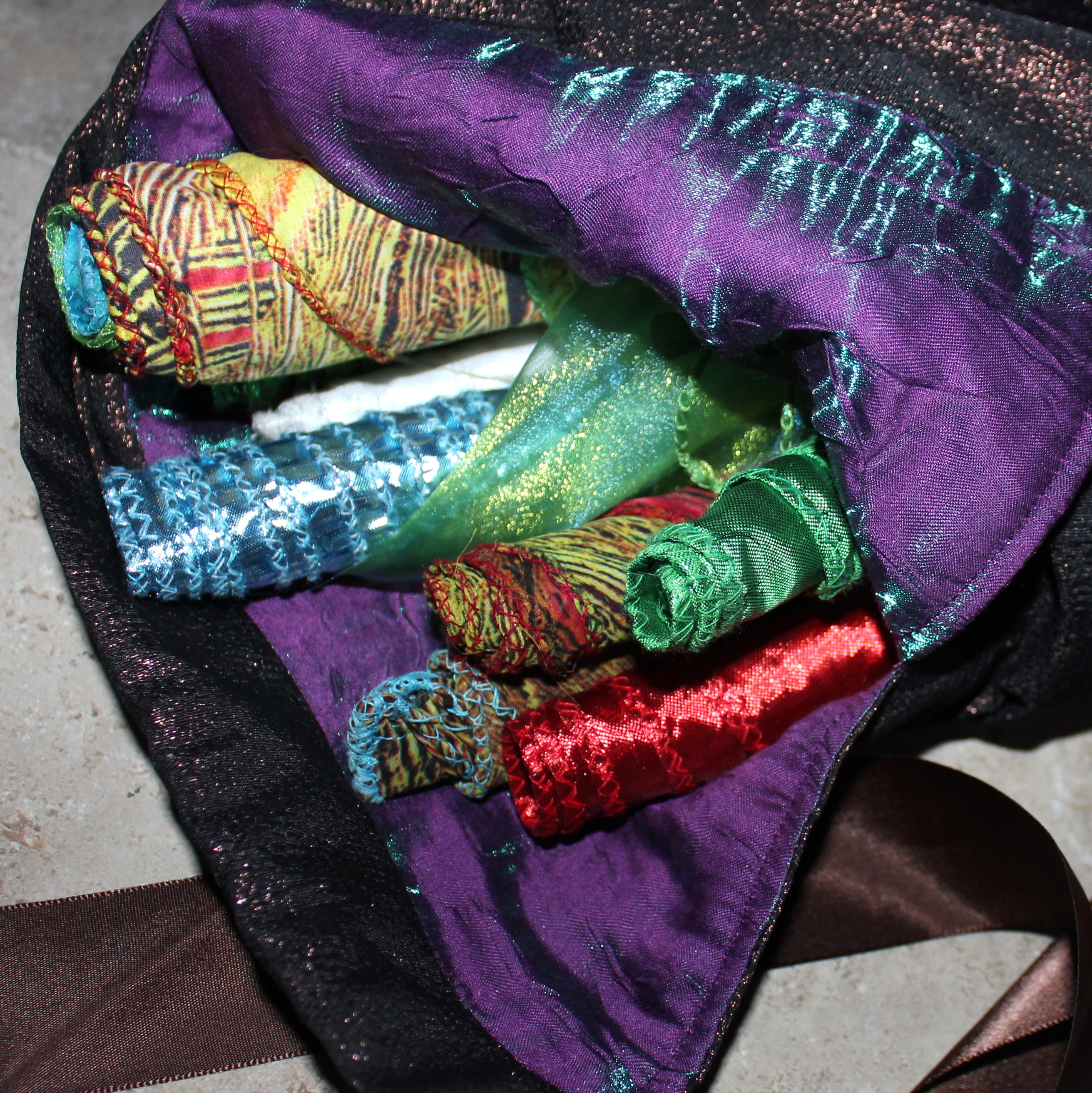 This beautiful flag bag was designed by Beauty for Ashes® and made in the USA. This is a limited edition once they are sold out the material is no longer available. The flag bag is very easy to carry around with a sturdy handle, with beautiful crinkle bronze fabric and rich brown accents with an additional feature of an iridescent lining in either pink or purple. An added zippered pouch can fit any small personal belongings or anointing oils. The length is about 42 inches long and 9" wide and 12" wide for the larger bag. The regular size flag bag can fit approximately 10 or more sets of flags depending how you roll them up. The large can fit about 20 depending on how they are rolled up. Beautiful, practical, and functional. Hand made to last. Quality item.