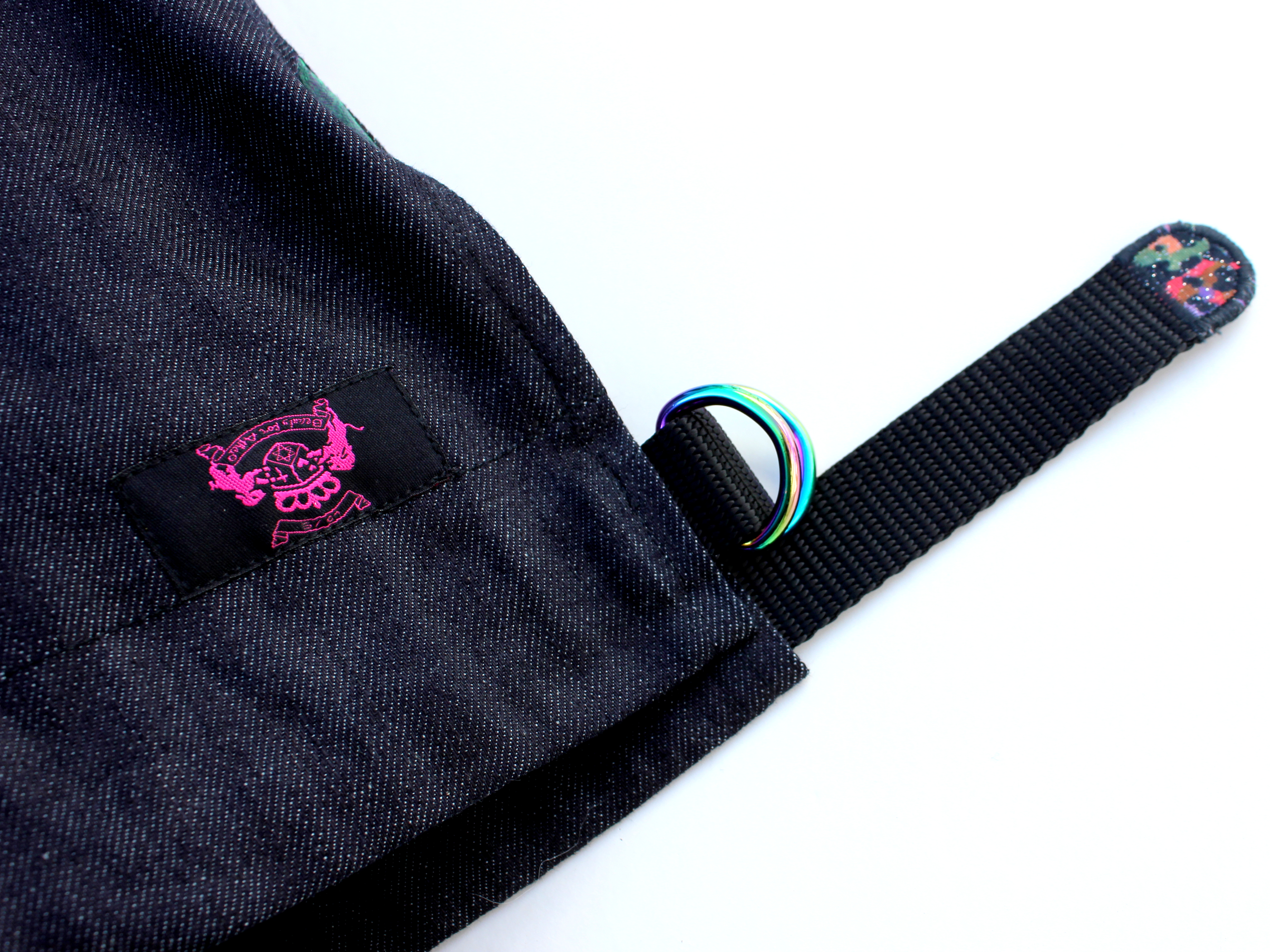 Black Denim Flag Bag with Iridescent Rainbow Accents by Beauty for Ashes®
