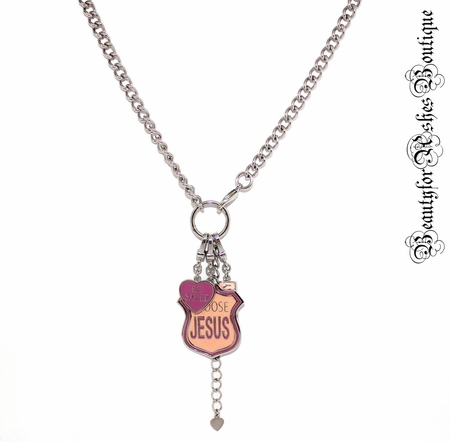 Love Beauty for Ashes Pink Choose Jesus Be Saved One Way Charm Necklace