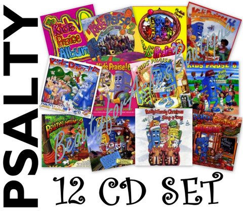 This is the complete set of Psalty's 1-10 plus 2 Christmas CD's. All factory sealed and new. This set includes the Kids Praise Album, Kid's Praise 2, Kid's Praise 3, Kid's Praise 4, Kid's Praise 5, Kid's Praise 6, Kid's Praise 7, Kid's Praise 8, The Search for Psalty's Missing 9, and Psalty's Kid's 10, Christmas Calamity, and Family Christmas Sing-a-long.