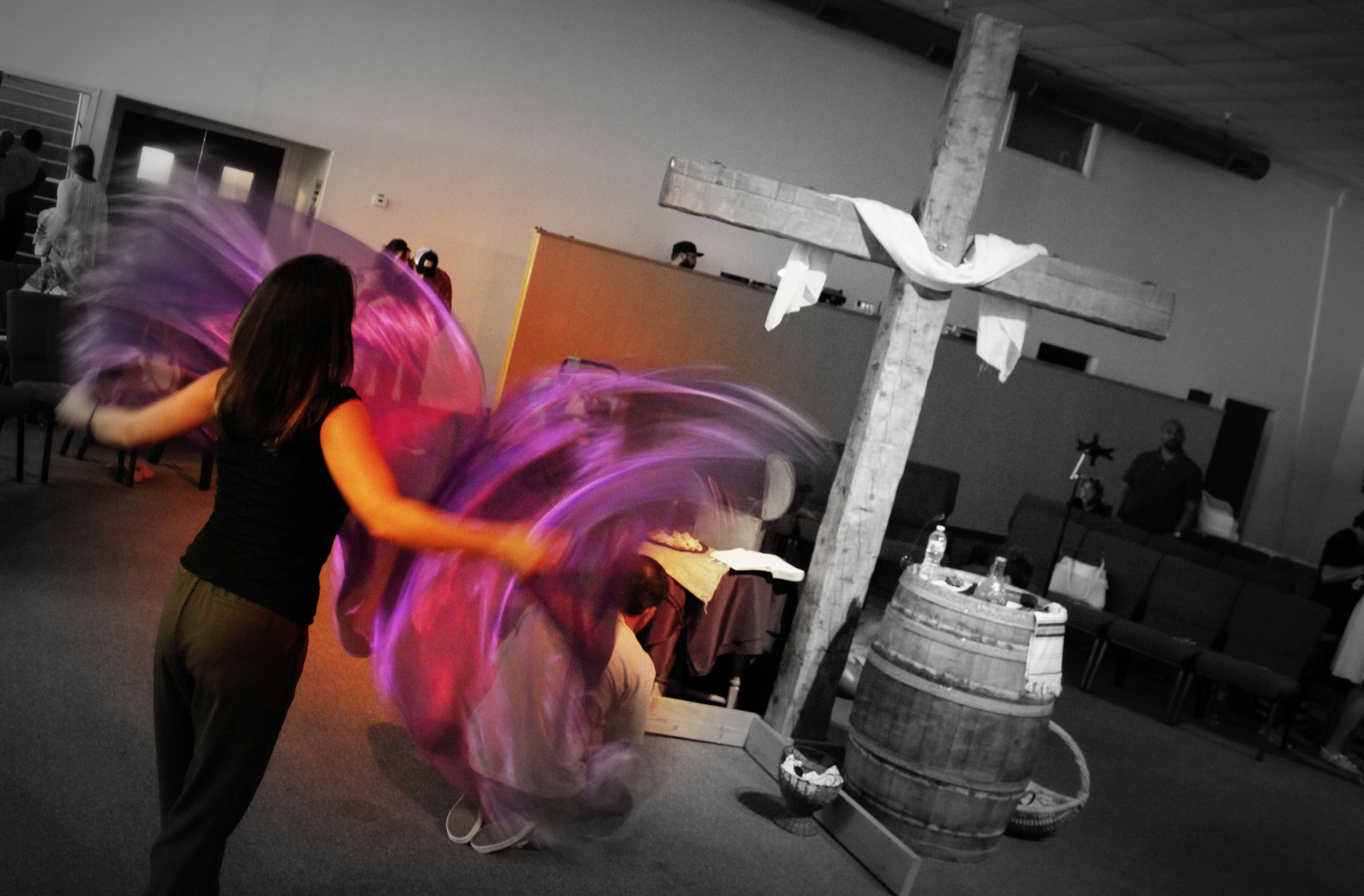 These beautiful worship flags are a special cut sewn with a frilly edge. Our semi-sheer worship flags in amethyst are strong and flow easily in worship.